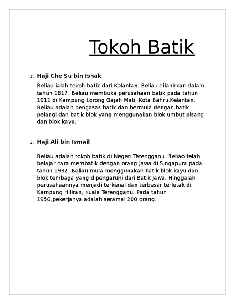 Tahniah permohonan anda berjaya. Ismaliza Ismail Serdang Hospital Dr. Di bawah rumah itulah dijadikan sebagai bengkel bagi menghasilkan batik terap pada.